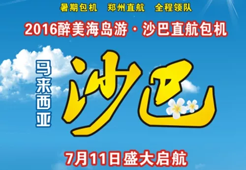 航班一:鄭州-亞庇MH8887 14:35/19:05 適用團(tuán)期:7.16/7.21/7.26