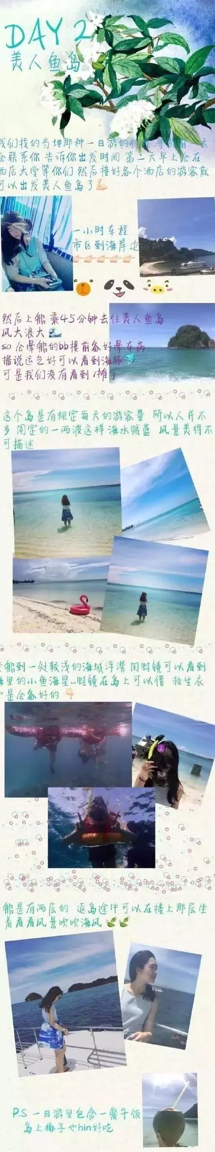 3、在海島浮潛時(shí),請注意安全,不要故意去觸摸水中的各種熱帶魚,避免不必要的傷害。