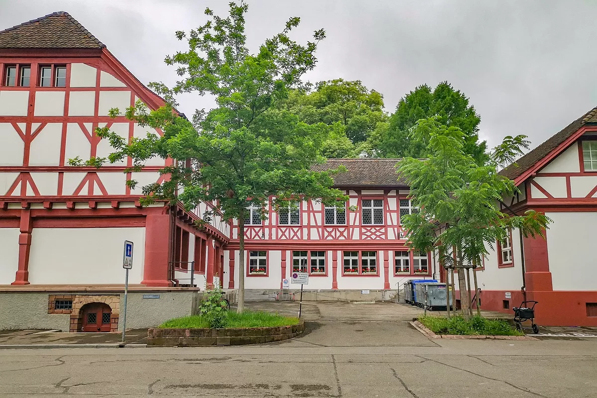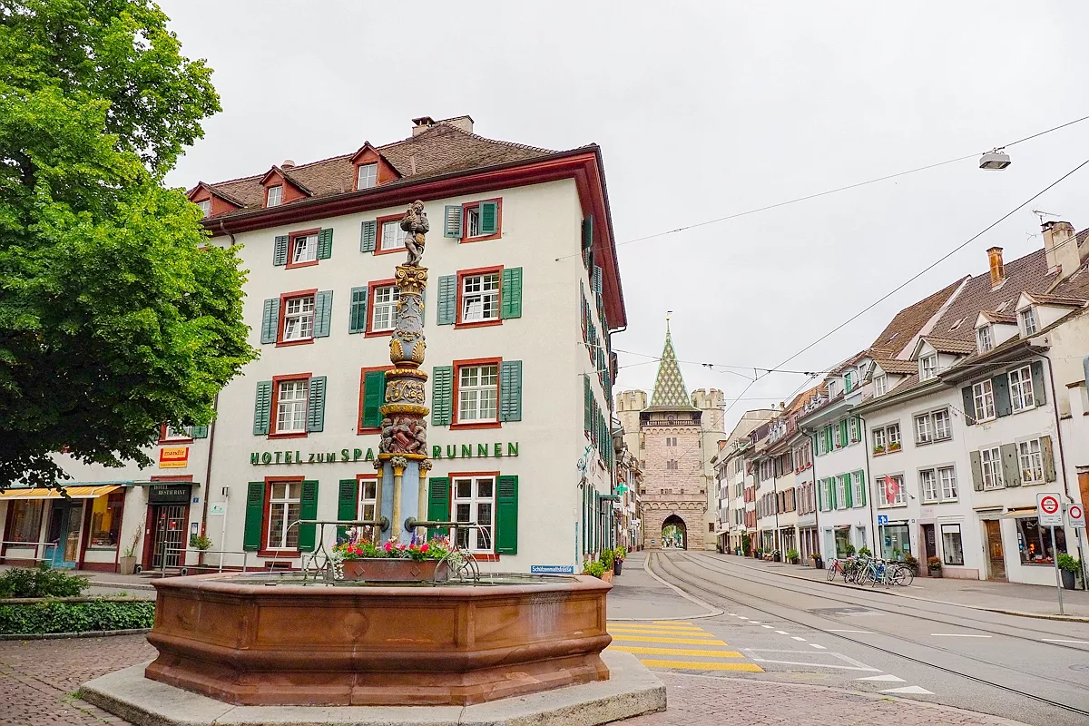 巴塞爾歷史悠久,古跡也不少,這個古老公共洗衣池入口有兩個巨大的石柱,三個墻面都是壁畫,估計從古羅馬時期就有了。