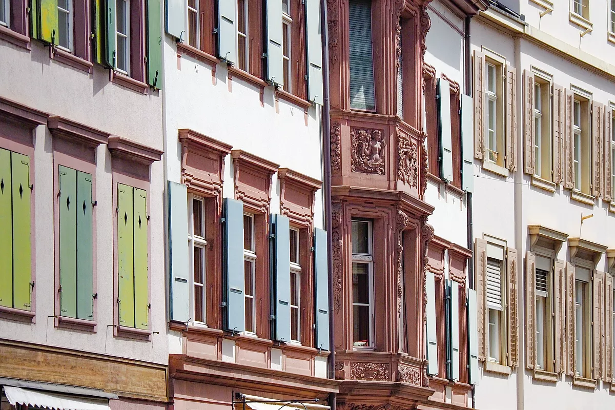 每棟建筑的木窗與窗框顏色都不同,卻又協(xié)調(diào)統(tǒng)一。彩色立面很有趣味性與觀賞性。