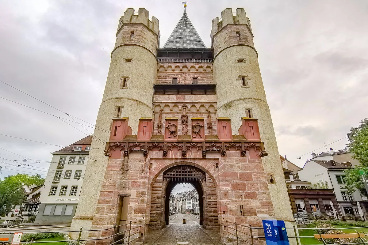 先看看它的老城,依照歐洲慣例,古城都是有城門的。巴塞爾的斯巴倫門Spalentor ,它初建于14 世紀,在 19 世紀加以改建,從前由法國進入巴塞爾時都必須經(jīng)過這扇城門。城門兩邊的塔樓高28米,過去是衛(wèi)兵站崗的地方。城門里外各有兩個沉重的閘門,防御功能強大。