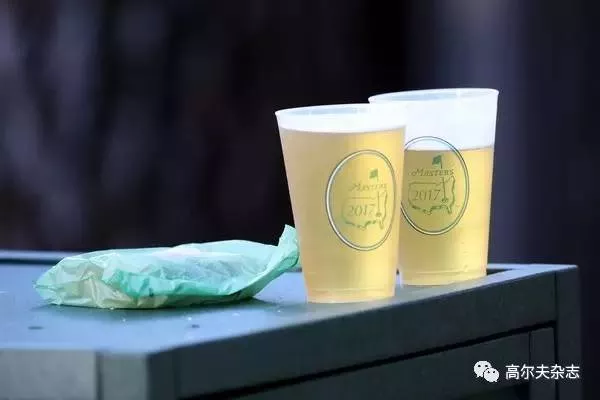 美國(guó)大師賽的飲料杯分為白色和綠色兩種,磨砂手感的塑料材質(zhì),上面印著美國(guó)大師賽的LOGO,令很多人舍不得喝完就丟掉,甚至不惜去垃圾桶撿上一打帶回家去留作紀(jì)念或是送給朋友。就連奧古斯塔鎮(zhèn)上的一些體育餐吧,都直接用奧古斯塔啤酒杯做成了餐廳的擺設(shè),不同年份的啤酒杯仿佛也順便記錄了餐廳的年份。