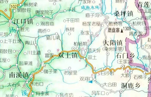 造成雙土鎮(zhèn)集鎮(zhèn)狹長的原因,只有地形了。雙土集鎮(zhèn)位于河谷之中,街道和兩旁的建筑都是順著河流分布著。而集鎮(zhèn)南北都是山地,無法進(jìn)行集鎮(zhèn)擴(kuò)展,所以就形成了狹長的集鎮(zhèn)形態(tài)。