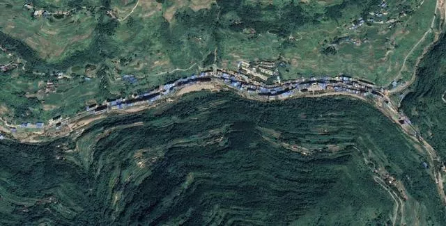 最近查看重慶云陽縣的衛(wèi)星影像,發(fā)現(xiàn)這里有一個(gè)十分狹長的集鎮(zhèn),它就是雙土鎮(zhèn)的集鎮(zhèn)(又叫“大石包”)。