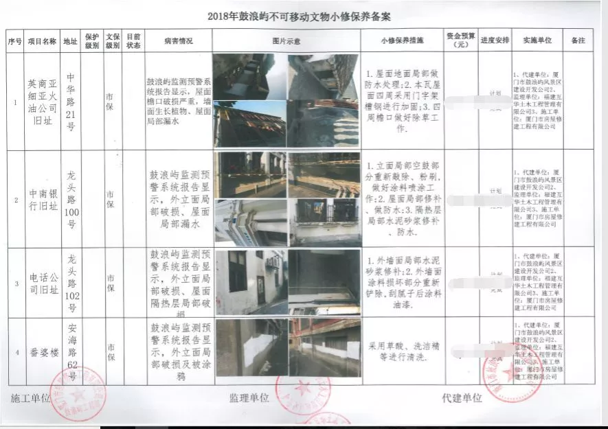 此前不久,鼓浪嶼開發(fā)公司工程部洪棟梁剛接到鼓浪嶼管委會(huì)文保處的通知?!八伲≈心香y行舊址有需要修補(bǔ)的地方?!彼焖俨榭戳藘?nèi)容,就馬上組織幾家備選施工單位的工作人員到現(xiàn)場(chǎng)查看??吹绞┕挝幻媛峨y色,洪棟梁耐心向大家解釋并要求:雖然這么小的工作量不好安排工人,跟大項(xiàng)目一樣也要寫好幾份報(bào)告,但不能降低標(biāo)準(zhǔn)和要求。中南銀行舊址是鼓浪嶼53處申遺要素之一,必須及時(shí)修補(bǔ)好。他說(shuō),“大家一起多幫幫忙,這樣的修補(bǔ),就只能是這樣的支出了?!苯?jīng)過(guò)與幾家施工單位反復(fù)交流溝通,現(xiàn)場(chǎng)把價(jià)格擬定在1000元左右。