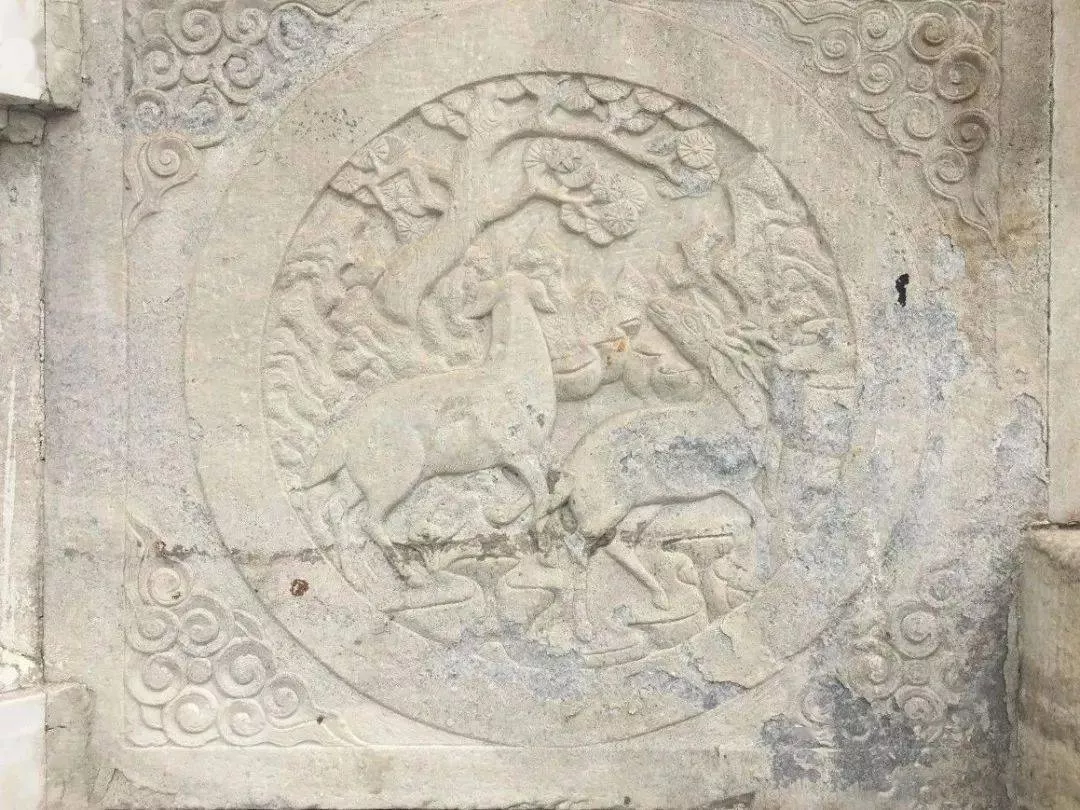 迎賓院墻漢白玉雕刻:松鹿