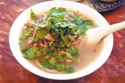 庫倫蕎面饸饹中數(shù)酸菜鹵子最受歡迎,濃濃的大骨湯、入味極深的拆骨肉、清爽的酸菜,實(shí)現(xiàn)了完美的搭配。