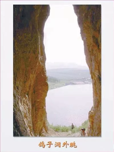 鴿子洞是處于第二級懸壁上的天然洞穴,因成群的鴿子居于洞中而得名。1973年、1975年考古工作者發(fā)掘出一批石制品、動物化石,發(fā)現(xiàn)了用火痕跡。洞穴由奧陶紀(jì)石灰?guī)r和侏羅紀(jì)紫紅色砂頁巖組成,由于地下水溶蝕作用,使這一帶石灰?guī)r生成袋形和垂直豎井式洞穴。洞內(nèi)有許多大小不等、形狀各異的溶洞。洞內(nèi)堆積可分六層,文化遺物主要集中在二三層,厚達(dá)1.5—2米。