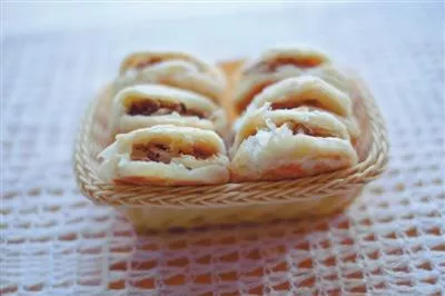 這是赤峰的一種特色食品,源于一種“杈子燒餅”,其用一定比例的油水和面,外用小米面或糜子面擦酥,并涂以酥油,食前火烤片刻即成,內(nèi)夾熏肉,外焦里嫩。