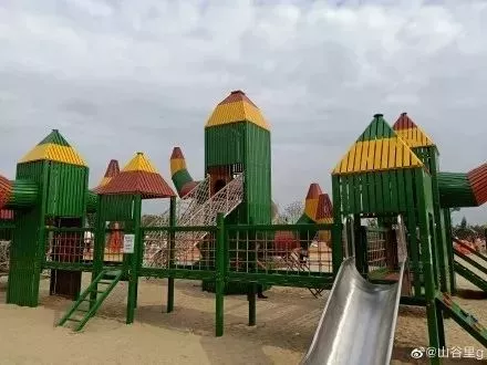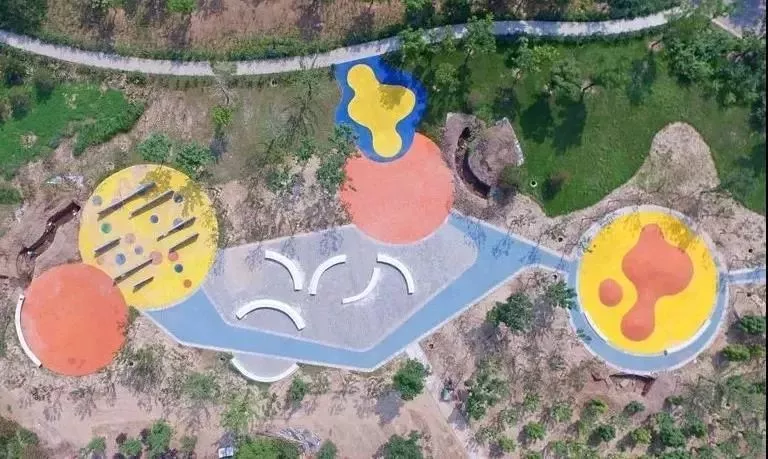 旁邊的兒童活動區(qū)占地面積1萬余平方米,設(shè)有多處活動器械和多樣空間。值得注意的是,這里所有設(shè)施都是無動力的,地面也全部鋪設(shè)塑膠,家長可以放心讓孩子玩耍。