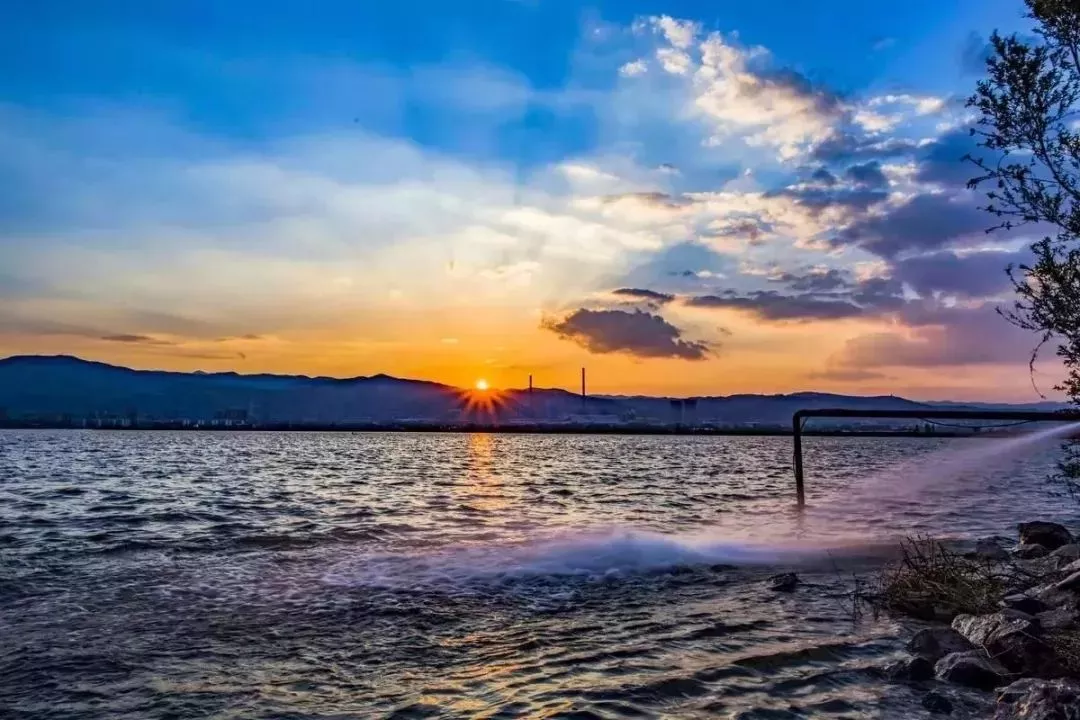 晉陽湖是華北地區(qū)最大的人工湖,其湖面浩瀚,堪與杭州西湖媲美。早晨,朝陽穿過晨霧的籠罩,湖面上閃耀著粼粼的銀光,湖水與天色一樣明凈蔚藍(lán),來回蕩漾輕輕拍擊著石岸。傍晚,夕陽西斜,湖水上一片金光,晉陽湖更顯得俏麗柔媚,儀態(tài)萬方。面對此情此景,我不由得吟詠起蘇東坡“水光瀲滟晴方好,山色空蒙雨亦奇。欲把西湖比西子,濃妝淡抹總相宜”的詩句。