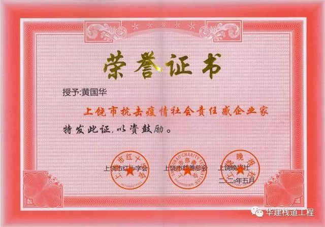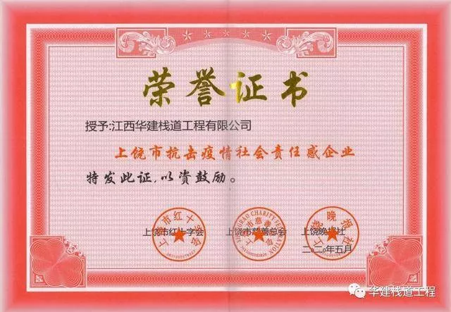 如今一份證書讓華建棧道更感一份榮譽(yù)。