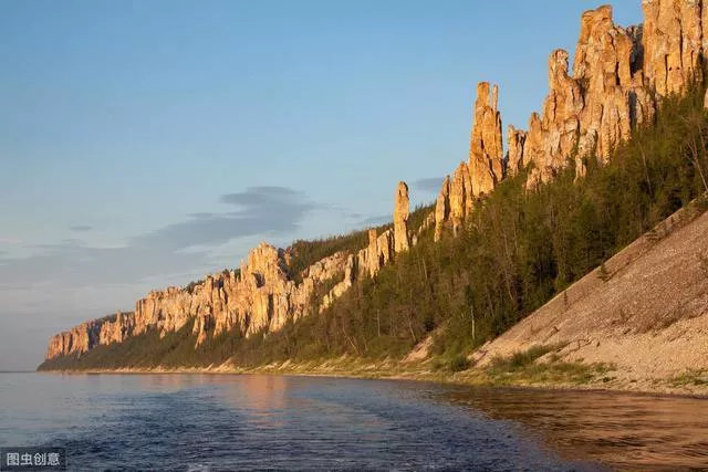 這里還有俄羅斯的第一大河—勒拿河。勒拿河位于中西伯利亞高原與東部山地之間,常被稱為俄羅斯最長的河流,它源于貝加爾湖之西,南北流向注人北冰洋,長約4400千米,流域面積約250萬平方千米。