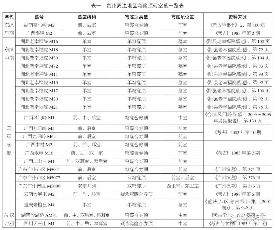 筆者搜集貴州周邊地域清理的穹窿頂磚室墓9處,近30座(表一)。
