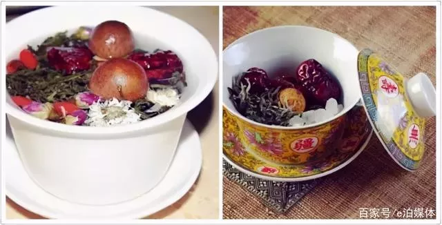三泡臺(tái),是老蘭州喝的一種蓋碗茶,因茶具由茶蓋、茶碗、茶托三部分組成,故名三泡臺(tái),也叫“刮碗子”,喝之前一定要提起蓋在茶湯上刮幾下,把料攪起來,所謂“一刮甜,二刮香,三刮茶鹵變清湯”。標(biāo)準(zhǔn)配料通常有春尖茶、桂圓、菊花、紅棗、枸杞、杏干、冰糖等,一起用開水沖泡,味道清甜順口。