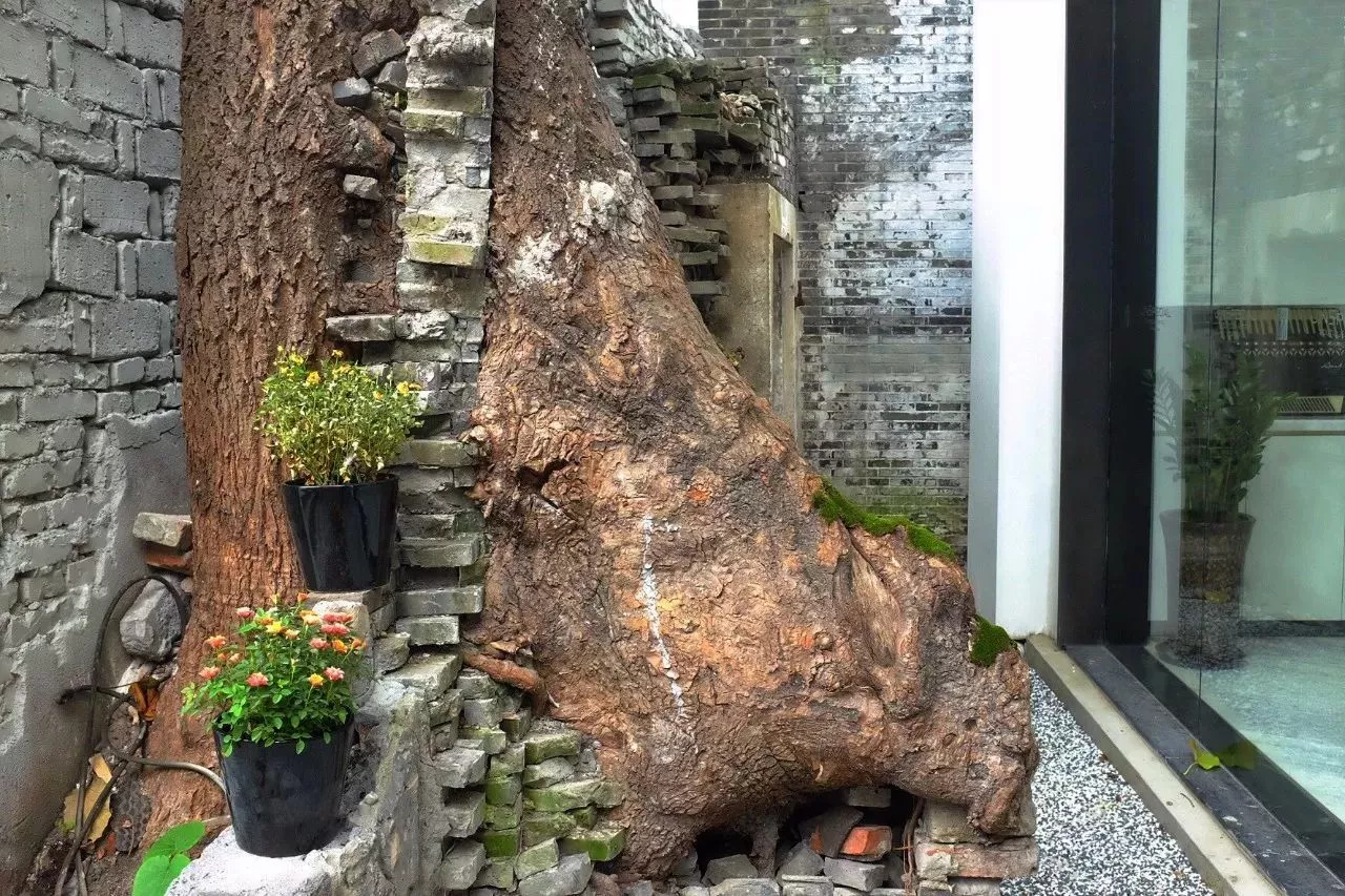 老樹歪在前面,遒勁的樹根周圍散落著斷裂的青磚,頗有猶抱琵琶半遮面的味道,一不注意就會錯過里面的一方天地。
