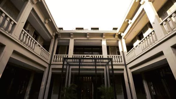 時空錯落之感從看到大廳那刻便起了。若不是那棵盤桓在門前的古樹,我可能無法確認(rèn)這外表充滿現(xiàn)代主義極簡風(fēng)格的建筑和“民國”能扯上關(guān)系。