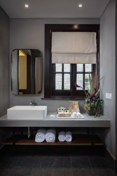 30年代的上海已經(jīng)遠(yuǎn)去,但對精致生活的追求,卻一直都在。德國進(jìn)口的衛(wèi)浴,全套的菲拉格慕備品,棉麻材質(zhì)的拖鞋,電動的窗簾,超大浴缸和寬闊的衛(wèi)生間面積,過硬的房間配置不負(fù)這棟百年大宅的奢華氣質(zhì)。