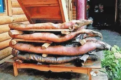 摩梭人制作豬膘肉的過程非常講究。他們一般選在冬月初一殺豬,如果十月二十九屬狗三十屬豬,那么就改在十月二十九宰殺豬,也就是說,做豬膘肉,一定要選擇良辰吉日,這和摩梭人的信仰有著必然的聯(lián)系。