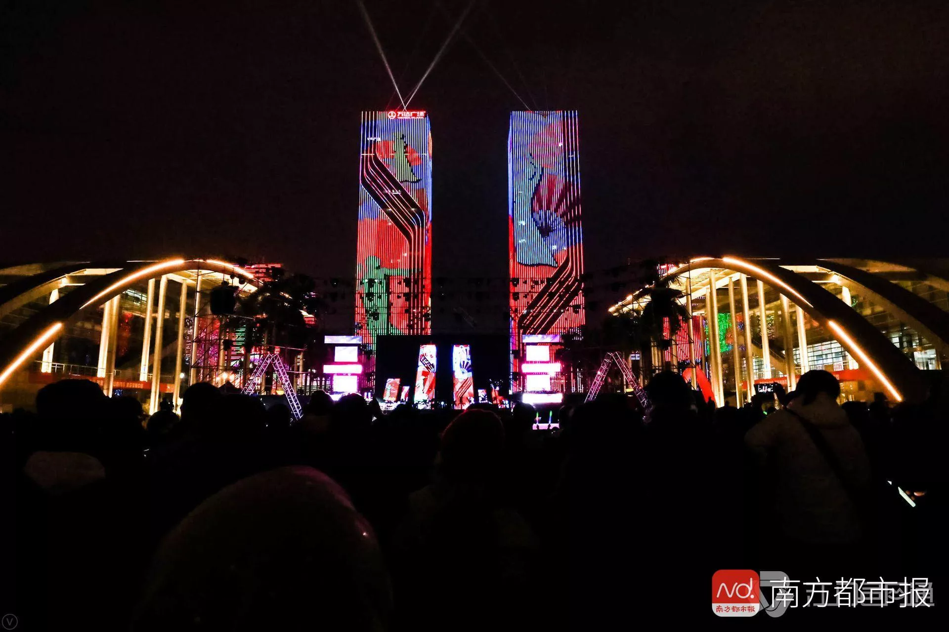 江門市城市亮化工程亮燈,五邑華僑廣場上演音樂燈光秀 亮化工程