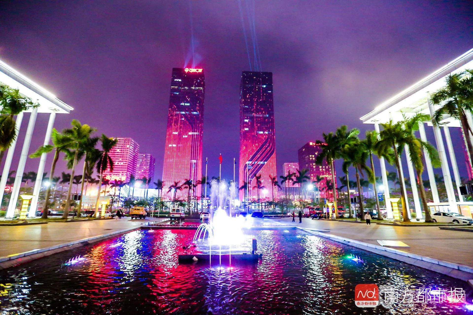 • 江門市城市亮化工程亮燈,五邑華僑廣場上演音樂燈光秀