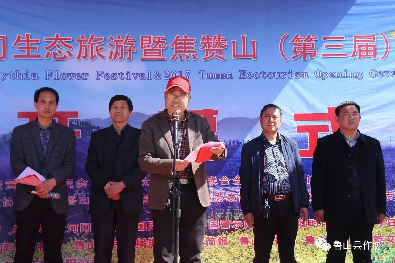 4月6日上午,2018魯山土門生態(tài)旅游焦贊山(第四屆)連翹花節(jié)開(kāi)幕式在魯山縣土門辦事處焦山文化廣場(chǎng)隆重舉辦??h委常委、縣武裝部政委張旭,縣政協(xié)副主席、縣炎黃文化研究會(huì)執(zhí)行會(huì)長(zhǎng)邢春瑜,縣文聯(lián)主席、縣民協(xié)主席郭偉寧,土門辦事處黨工委書(shū)記吳廣志,土門辦事處黨工委副書(shū)記、辦事處主任王柯夫,縣作家協(xié)會(huì)主席葉劍秀,縣詩(shī)詞楹聯(lián)協(xié)會(huì)主席李保國(guó)和縣攝影家協(xié)會(huì)、縣書(shū)法家協(xié)會(huì)等相關(guān)單位領(lǐng)導(dǎo)及慕名而來(lái)的周邊市、縣眾多游客及附近群眾參加開(kāi)幕式并觀看了當(dāng)天的文藝表演、詩(shī)詞朗誦等文化活動(dòng)。