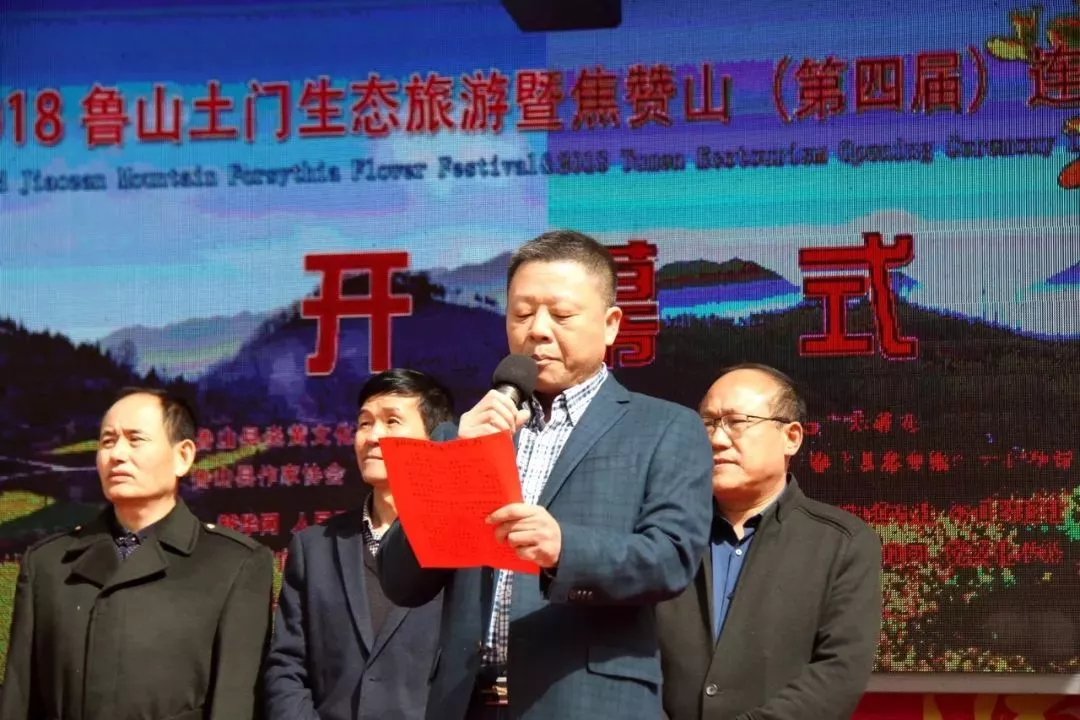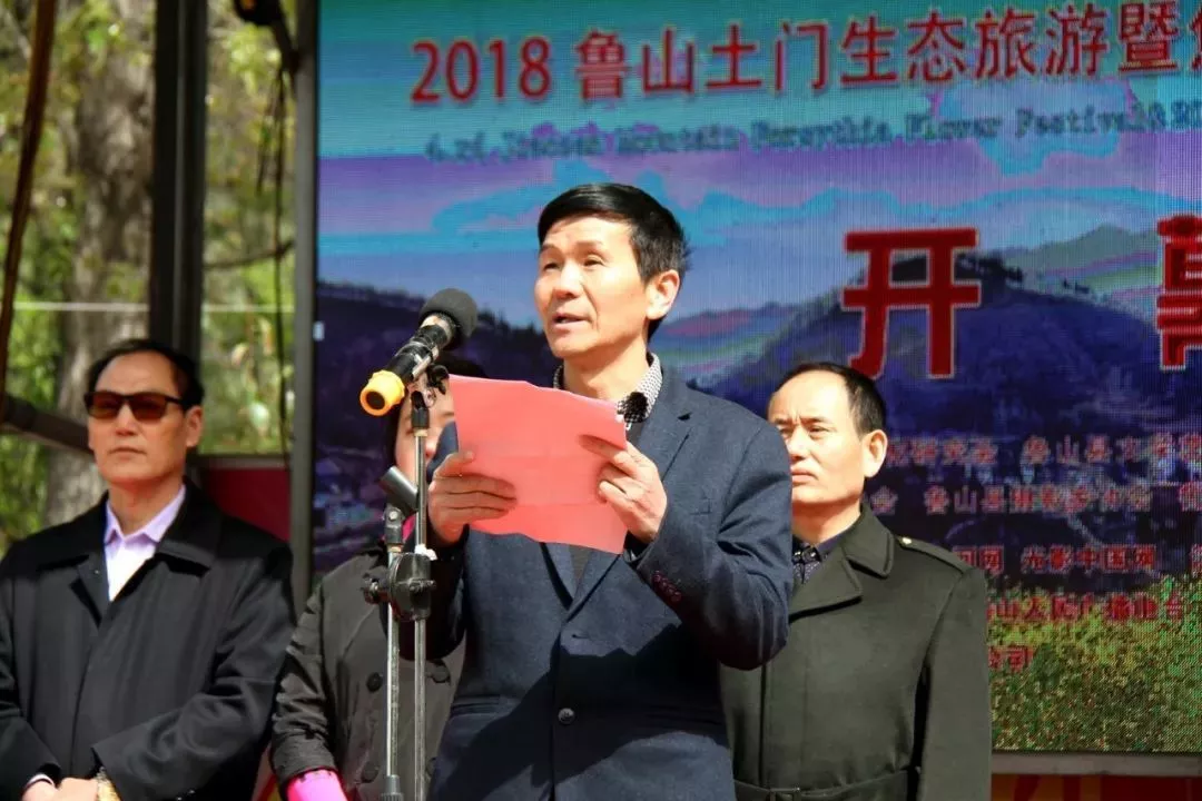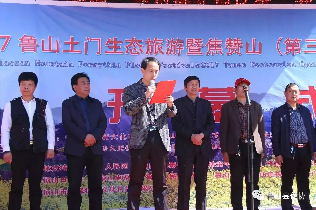 縣委常委、縣武裝部政委張旭宣布“2018魯山土門生態(tài)旅游暨焦贊山(第四屆)連翹花節(jié)”開(kāi)幕??!