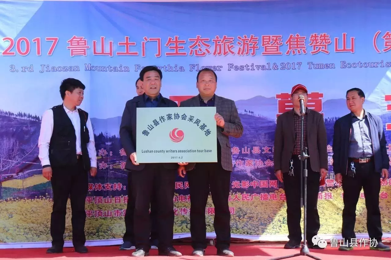 開(kāi)幕式由土門辦事處黨委書(shū)記汪耀恒主持,土門辦事處主任吳廣志致辭,魯山縣文聯(lián)主席袁占才致辭,魯山縣作家協(xié)會(huì)主席葉劍秀、魯山縣攝影家協(xié)會(huì)主席郭東偉分別授予焦山村寫(xiě)作基地和攝影基地牌子。