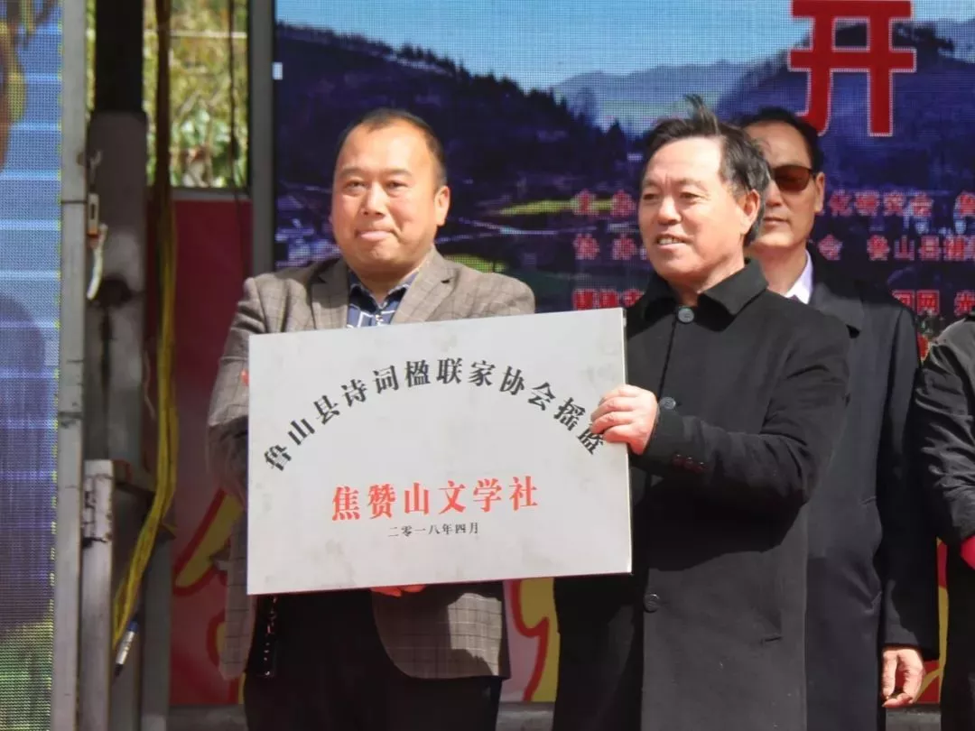 魯山縣詩(shī)詞楹聯(lián)協(xié)會(huì)、焦贊山文學(xué)社向焦山村授牌。