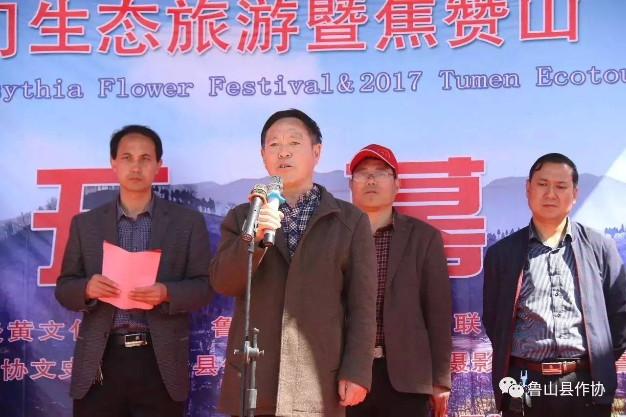 千里連翹花盛開(kāi),深山美景入眼來(lái)!4月6日上午,2018魯山土門生態(tài)旅游暨焦贊山(第四屆)連翹花節(jié)開(kāi)幕式在魯山縣土門辦事處焦山村文化廣場(chǎng)隆重舉辦??h委常委、縣武裝部政委張旭,縣政協(xié)副主席、縣炎黃文化研究會(huì)執(zhí)行會(huì)長(zhǎng)邢春瑜,縣文聯(lián)主席、縣民協(xié)主席郭偉寧,土門辦事處黨工委書(shū)記吳廣志,土門辦事處黨工委副書(shū)記、辦事處主任王柯夫,縣作家協(xié)會(huì)主席葉劍秀,縣詩(shī)詞楹聯(lián)協(xié)會(huì)主席李保國(guó)和縣攝影家協(xié)會(huì)、縣書(shū)法家協(xié)會(huì)