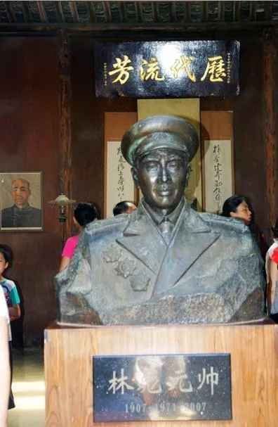 堂前安放著一尊2007年塑造的著元帥服的林彪半身銅像,
