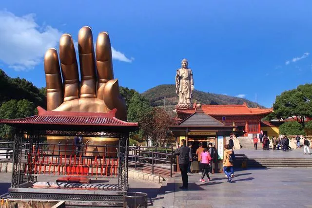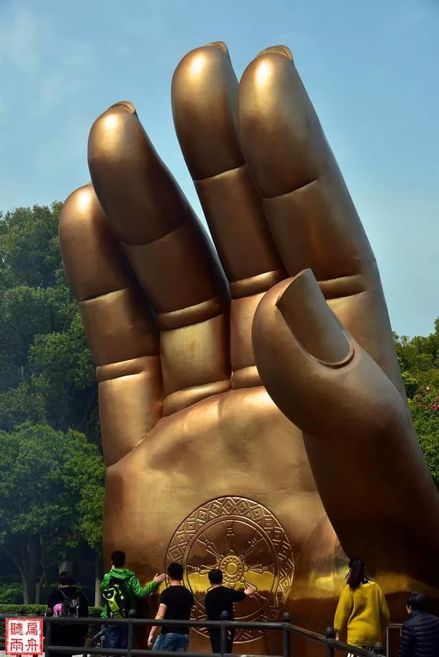 若想繼續(xù)增加自身的威嚴(yán)和威力,那就再來(lái)參拜法力無(wú)邊的天下第一掌。天下第一掌為靈山大佛右手的復(fù)制件,它與靈山大佛右手形狀、大小完全一樣,以1:1的比例復(fù)制而成。手掌高達(dá)11.7米,相當(dāng)于三層樓的高度,總重量達(dá)13噸。佛掌的印相為“施無(wú)畏印”,寓意驅(qū)除眾生痛苦,令眾生無(wú)畏無(wú)懼。