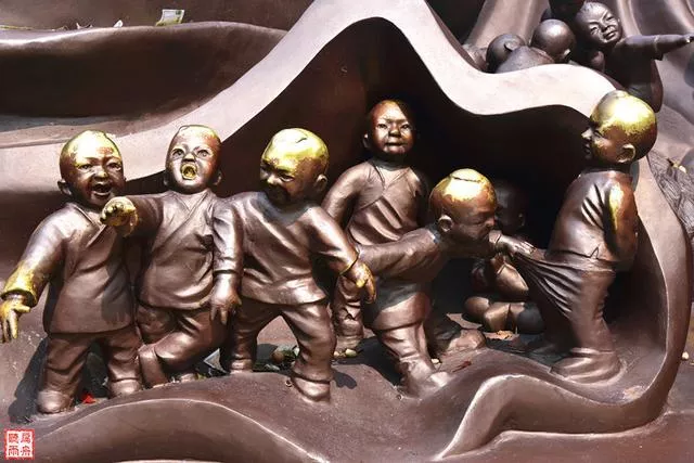 如果說(shuō)佛祖過(guò)于嚴(yán)肅的話,膜拜之后,可以來(lái)享用一下詼諧的趣味,佛前的大型青銅藝術(shù)珍品 “百子戲彌勒”,一定會(huì)讓你心情豁然開朗,和布袋和尚彌勒一起“容天下難容之事,笑世間可笑之人”。