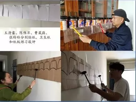 關(guān)于鐘磬的演奏練習(xí),是王清雷團(tuán)隊(duì)面臨的最大難題。例如?;韬顒①R墓編鈕鐘的試奏。按照保護(hù)文物的規(guī)定,編鈕鐘文物原件是不能用來(lái)練習(xí)的,王清雷團(tuán)隊(duì)又沒(méi)有資金復(fù)制一套劉賀墓編鈕鐘用來(lái)練習(xí),那么怎么練習(xí)演奏編鐘呢?鐵人王進(jìn)喜有句話說(shuō):“有條件要上,沒(méi)有條件創(chuàng)造條件也要上”。王清雷團(tuán)隊(duì)冥思苦想,使用替代的辦法。最初用衛(wèi)生紙或者墻上貼紙?zhí)娲庣?,用手機(jī)播放所要演奏的樂(lè)曲。幾個(gè)月之后,又用紙板按照一比一的比例畫(huà)出編鈕鐘的簡(jiǎn)圖,各自在紙板上練習(xí)。最后才用編鐘實(shí)物試奏,最終解決了這一難題。正因積累了這些寶貴經(jīng)驗(yàn),王清雷團(tuán)隊(duì)于2019年試奏劉家洼M1鐘磬金石和鳴《北京的金山上》才得心應(yīng)手。
