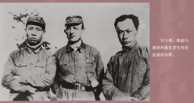 劉少奇、陳毅在華中非常重視統(tǒng)戰(zhàn)工作,成立了工人抗日救國會、農(nóng)民抗日救國會、蘇北文化協(xié)會、在華日人反戰(zhàn)同盟等群眾團體,劉少奇、陳毅于9月中旬在海安出席著名愛國紳士韓國鈞主持的聯(lián)合抗日座談會,與蘇北八縣紳、商、學界知名人士共商抗日大計;劉少奇、陳毅率領的江北新四軍和八路軍第五縱隊黃克誠部在白駒集獅子口勝利會師,韓國鈞設家宴款待陳毅、張茜夫婦,陳毅在韓公館西花廳即興揮毫賦詩書贈劉少奇、黃克誠:“十年征戰(zhàn)幾人回,又見同儕并馬歸。 江淮河漢今誰屬,紅旗十月滿天飛”。