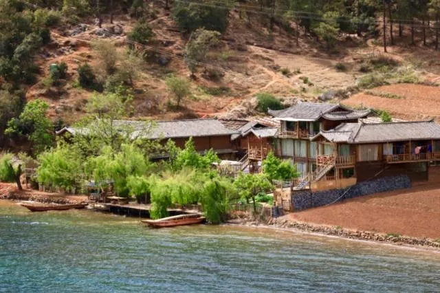 客棧坐落在瀘沽湖畔的一個湖灣