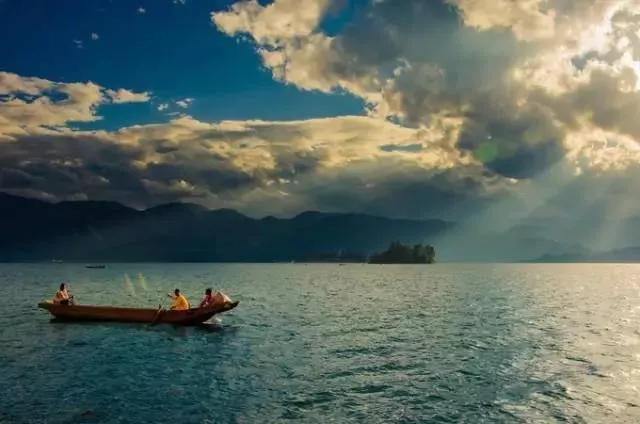 你可以坐上游船,繞著湖心島盡情飽覽湖光山