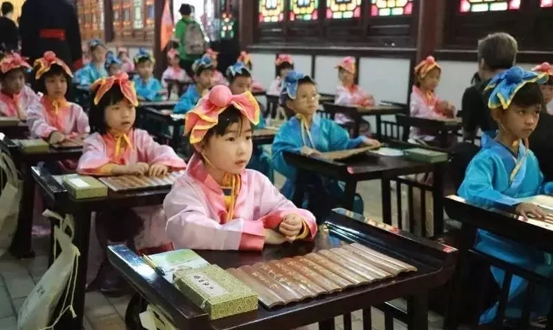 開筆禮是孔圣園內(nèi)每年都會舉行的傳統(tǒng)儀式,不少家長帶上“準小學生”慕名而來。身穿漢服參拜孔子,懵懂孩提正襟危坐,額點朱砂學寫四字,朱衣道人授業(yè)啟蒙。