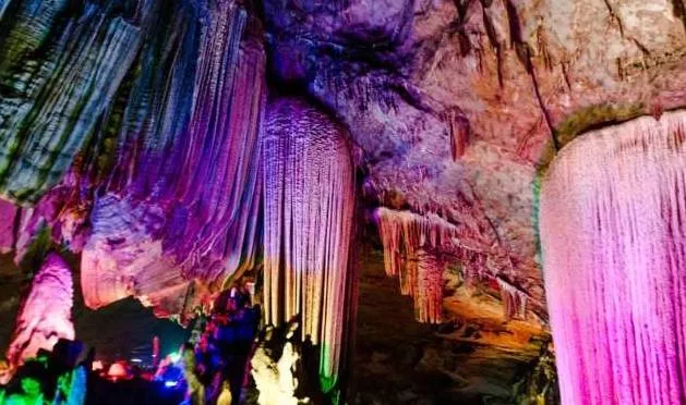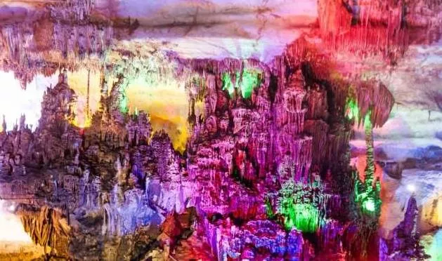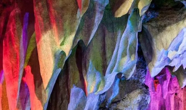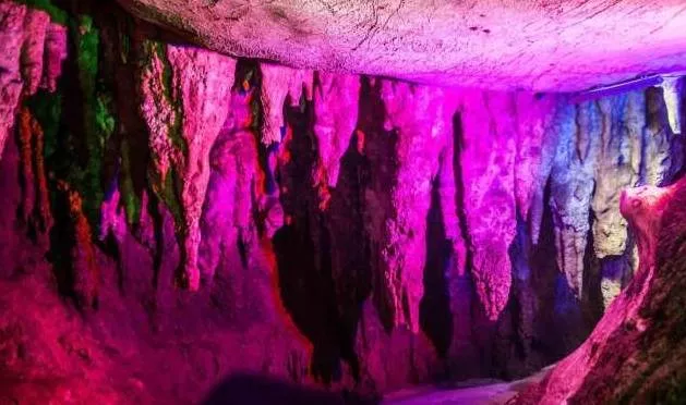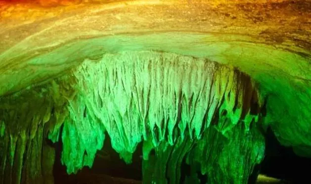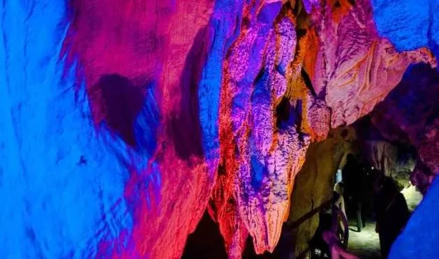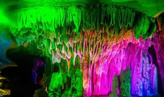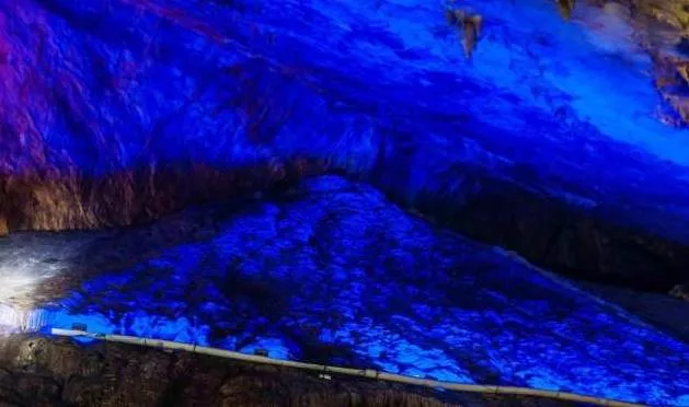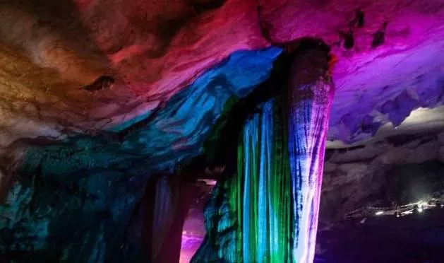 進(jìn)入洞內(nèi),你會(huì)發(fā)現(xiàn)洞的內(nèi)部仿若一個(gè)旋轉(zhuǎn)型的宮殿,將龍泉洞分為上下兩層。首先進(jìn)入的是位于下層的水洞。一條清澈見(jiàn)底的溪流緩緩的流淌著,溪流之上是千姿百態(tài)的巖石立柱,或大或小,或粗或細(xì),奇形怪狀卻各具韻味,五彩斑斕的燈光像女孩子化妝的亮粉灑滿巖石,將巖石的倒影投射在溪面上,既裝點(diǎn)了巖石立柱,又為潺潺流水增添了一絲絲夢(mèng)幻的色彩。溪流之下,是碎石細(xì)沙,