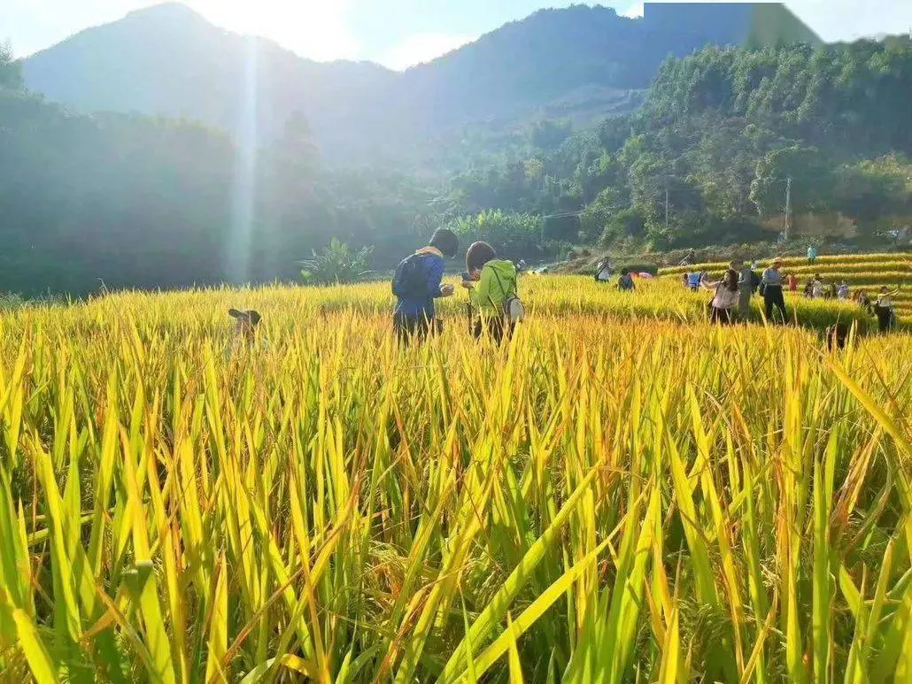 16:30 左右到達(dá)角峰村小梯田,然后大家盡情在金色梯田中攝影,多拍些美美的相片