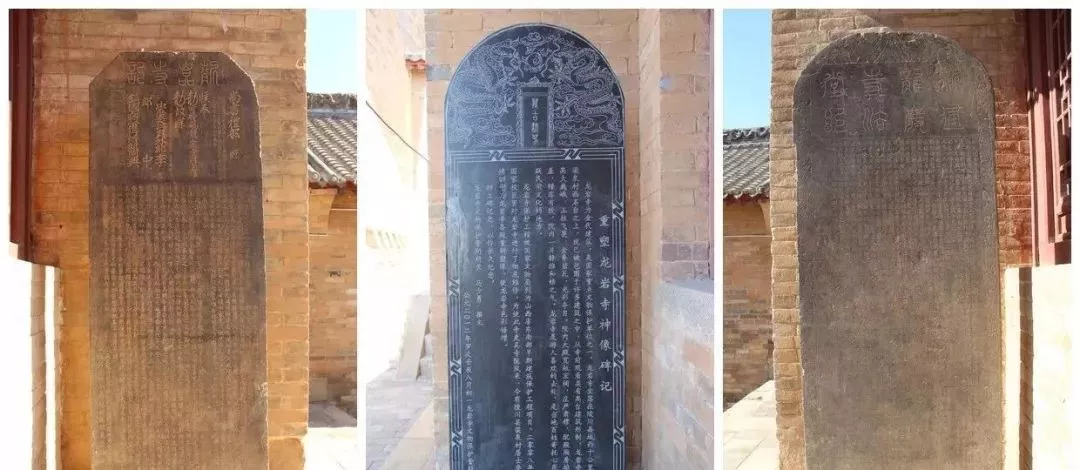 大殿兩側各有配殿三間,為元、明時期的建筑風格。后殿兩側存有二通完好的碑碣,一是金大定三年(1163年),由本縣平城人貞元年間進士趙安時撰寫的《龍巖寺記》;一是金大定二十五年(1185年),由當地鄉(xiāng)貢常謙撰寫的《新建龍巖寺法堂記》。這兩通碑上面真實地記錄了該寺的創(chuàng)建過程和歷史。