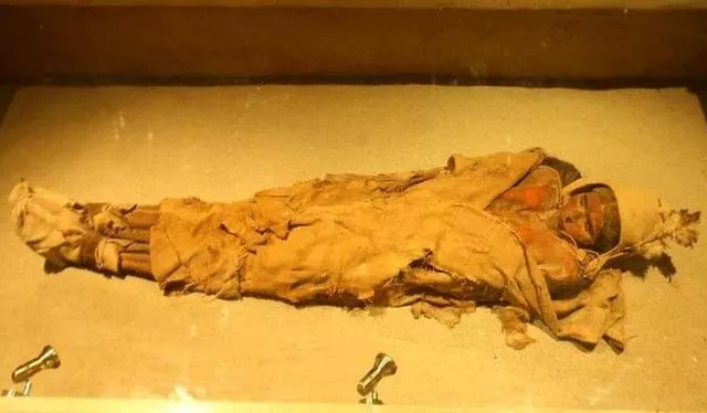 其中有一個(gè)船型棺材,打開棺材一看,里面有一具完好無(wú)損的古尸。嚴(yán)密的裹尸布一碰就碎成粉末。揭開面部的腐布竟然是一個(gè)年輕的女子,雙目緊閉,嘴角微翹,就像是睡著了一樣。這具沉睡了2000年的不腐女尸就是傳說中的樓蘭女王,也有說是樓蘭公主。