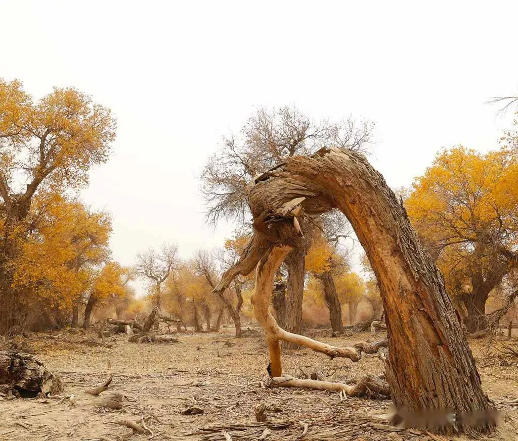 早拍攝輪南胡楊森林、沿途千奇百怪金色胡楊古樹。穿越世界zhuming的【塔克拉瑪干沙漠】公路,塔中油田。沙漠金色胡楊風光。