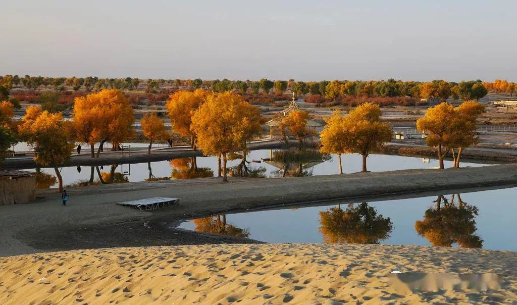 新疆網(wǎng)訊 (通訊員張金晨 李勇)隨著今年塔里木河第十八次生態(tài)輸水的順利進行,不僅為塔里木河下游胡楊生長和植被萌發(fā)創(chuàng)造了良好條件,也讓尉犁縣羅布人村寨景區(qū)“容顏煥發(fā)”,景區(qū)內(nèi)形成了一片片海子,塔河沙漠、胡楊交相輝映,成為秋季景區(qū)的又一道靚麗的風景線,吸引著四面八方的游客。