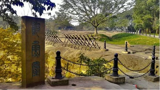 釣魚山在合川縣城東北部,距縣城約5公里,山上有一塊平整巨石,位于護(hù)國門之上,這就是釣魚臺。釣魚臺是馳名巴蜀的遠(yuǎn)古遺跡,遠(yuǎn)古傳說里山洪爆發(fā)之時(shí),有天神在此垂釣以饋饑民,巨神留下足跡的石臺就被稱為釣魚臺,臺前五個(gè)孔穴的巨石,被稱為插竿石。