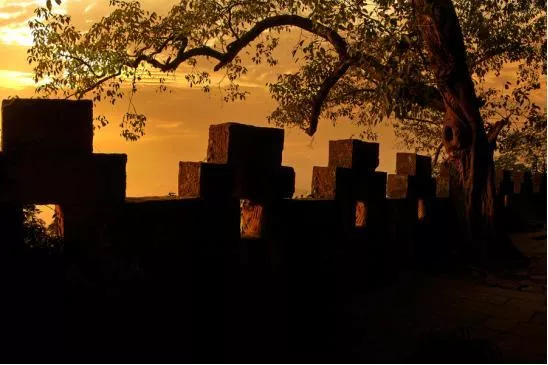 釣魚城的現(xiàn)城墻是在原城墻的基礎(chǔ)上重新修建的,因此依然極為壯觀。那8公里的城垣、8道城建門,以及炮臺、墩臺、棧道、水軍碼頭、兵工作坊、軍營等宋、元軍事及生活設(shè)施等等遺址猶見漫漫歷史長河留給釣魚城的戰(zhàn)爭印記。站在城墻邊的古炮臺前凝思神想,遙想當(dāng)年鐵馬金戈,不由使人心胸激蕩。從城墻古炮臺的垛口向城下遠(yuǎn)眺,嘉陵江奔騰而流,而順江而下正是嘉陵江、涪江、渠江的匯合口,城上可以清晰的看到釣魚城臥于三江懷抱。