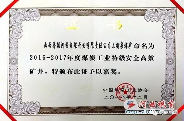 河曲視窗網(wǎng)訊:(通訊員:付萬(wàn)龍) 5月13,河曲縣榆泉煤礦中國(guó)煤炭工業(yè)協(xié)會(huì)五屆理事會(huì)二次會(huì)議上受到表彰嘉獎(jiǎng),榮獲全國(guó)煤炭工業(yè)特級(jí)安全高效礦井稱號(hào),這是該礦繼獲得煤炭工業(yè)一級(jí)安全高效礦井、國(guó)家能源集團(tuán)安全生產(chǎn)十周年以上井工單位等榮譽(yù)后,獲得的又一殊榮。