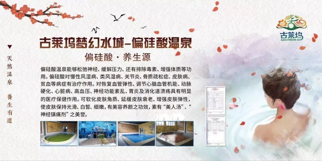 不僅水質(zhì)清澈透明,還富含偏硅酸,有助于松弛神經(jīng)、緩解壓力,休閑的同時還能帶給你和家人健康體魄。