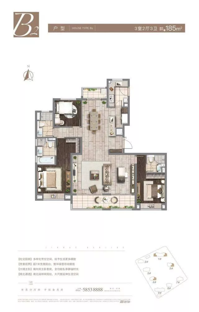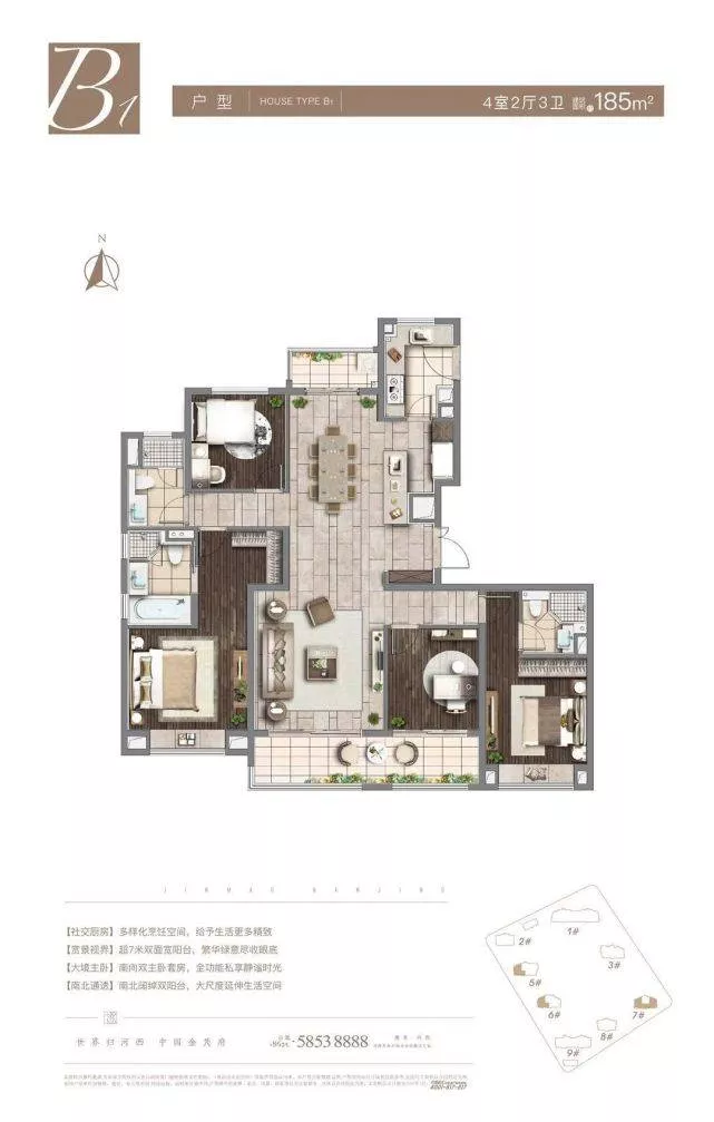 據(jù)了解,項(xiàng)目即將加推的房源中,1號(hào)樓邊戶為建筑面積約185㎡B2戶型,中間戶為建筑面積約225㎡戶型;3號(hào)樓東邊戶為建筑面積約185㎡B2戶型,西邊戶為建筑面積約225㎡戶型;7號(hào)樓全部為建筑面積約185㎡B1戶型。
