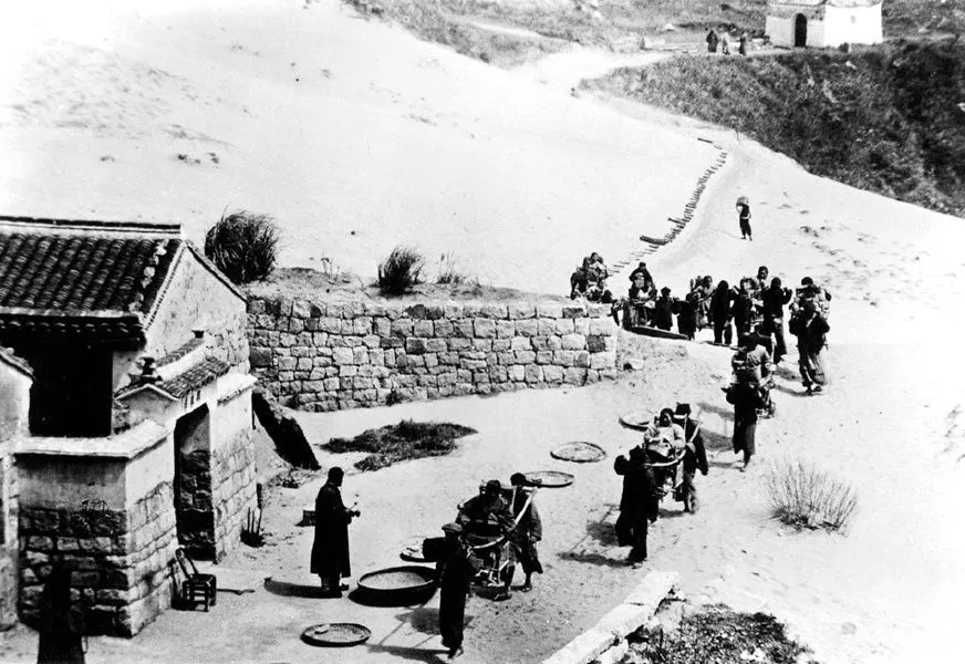 普陀山在佛教中的地位,正如普濟寺前一副對聯(lián)上寫的一樣“五朝恩賜無雙地,四海尊崇第一山”。這是更是著名的觀音道場,觀音文化是普陀山最大的標簽,常年佛光普照,香火不息。這些照片是民國時拍攝的普陀山的淳樸風貌。(常年坐在山道旁敲著木魚的修行僧人)